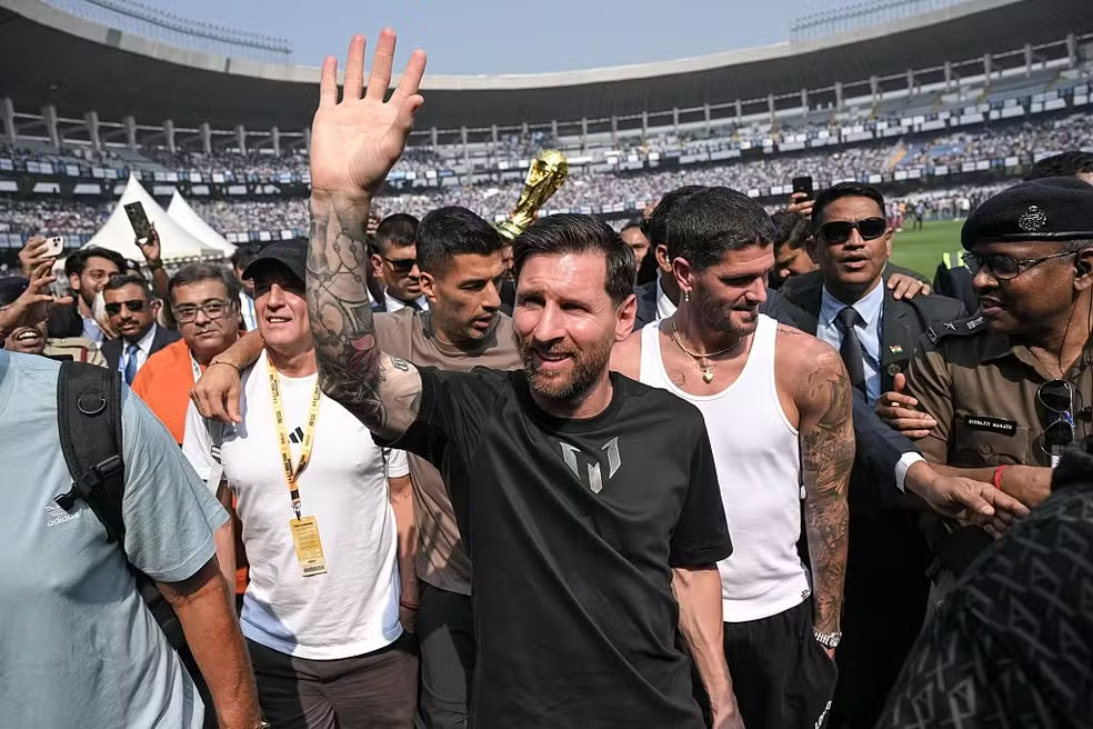 A passagem de Lionel Messi pela Índia começou de maneira turbulenta neste sábado, em Calcutá. O argentino fez apenas uma breve aparição no Salt Lake Stadium — oficialmente chamado de Vivekananda Yuba Bharati Krirangan —, o que gerou revolta entre os torcedores presentes.
