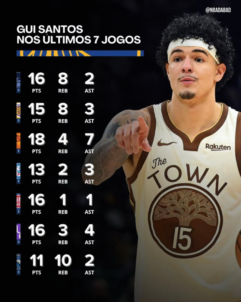Sem Stephen Curry nas últimas partidas, o Golden State Warriors encontrou em Gui Santos uma nova referência dentro de quadra.